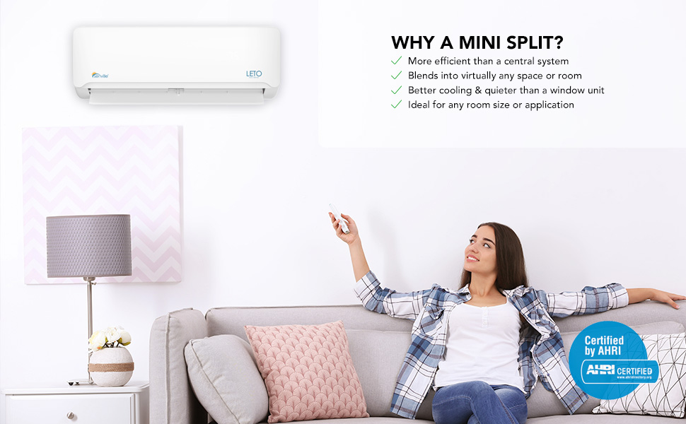 • 4-IN-1 MINI SPLIT SYSTEM: With air conditioning, built-in heat pump (up to 5F/-15C), dehumidifier, fan and turbo function. DC Inverter, UL Listed, AHRI Certified, Works with Alexa