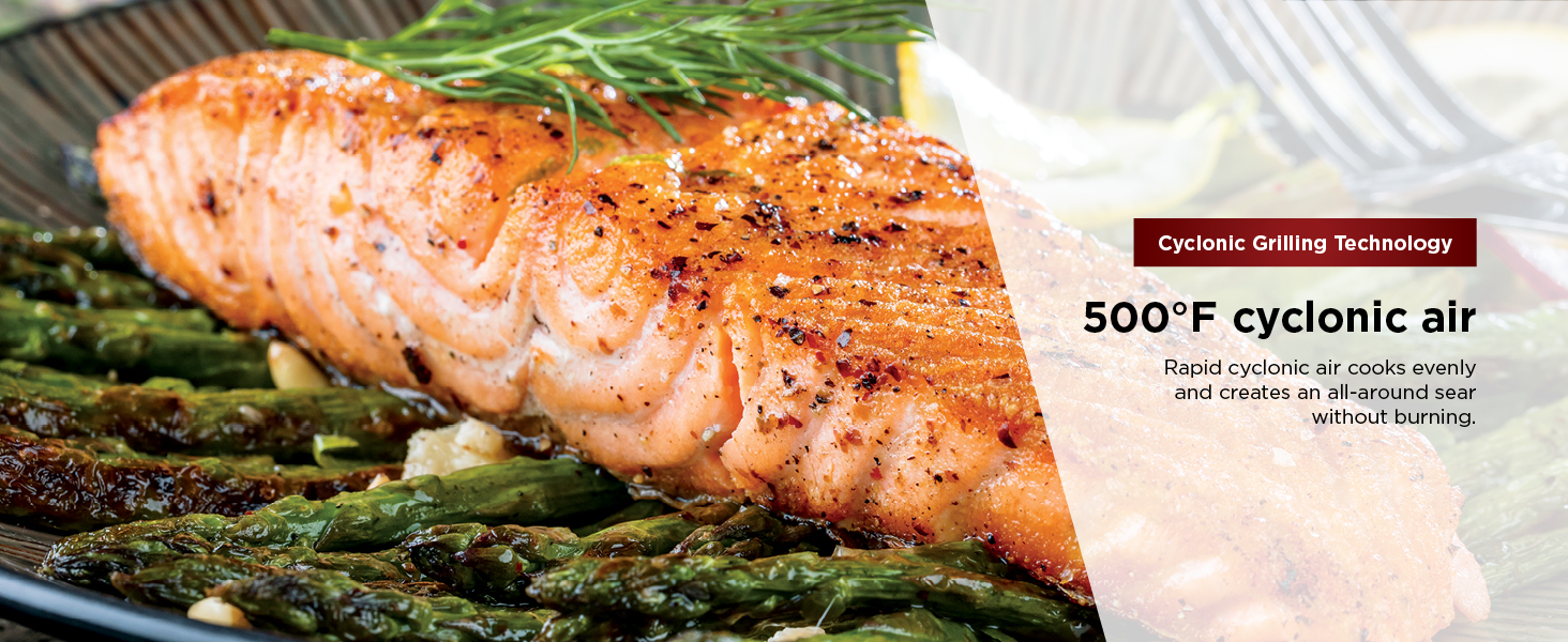 CYCLONIC GRILLING TECHNOLOGY: Uses 500°F cyclonic air to perfectly cook or char-grill your food to your desired doneness on the grill grate for delicious, char-grilled marks and flavors.