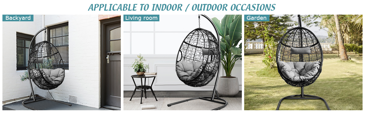 • Indoor/Outdoor Use: The swing chair is designed for both indoor and outdoor use. Unique egg-shape appearance blends with the surrounding environment better and adds a special leisure feeling. ❤️❤️❤️Please kindly note: This hammock stand and hammock chair set will be shipped in 2 boxes.❤️❤️❤️