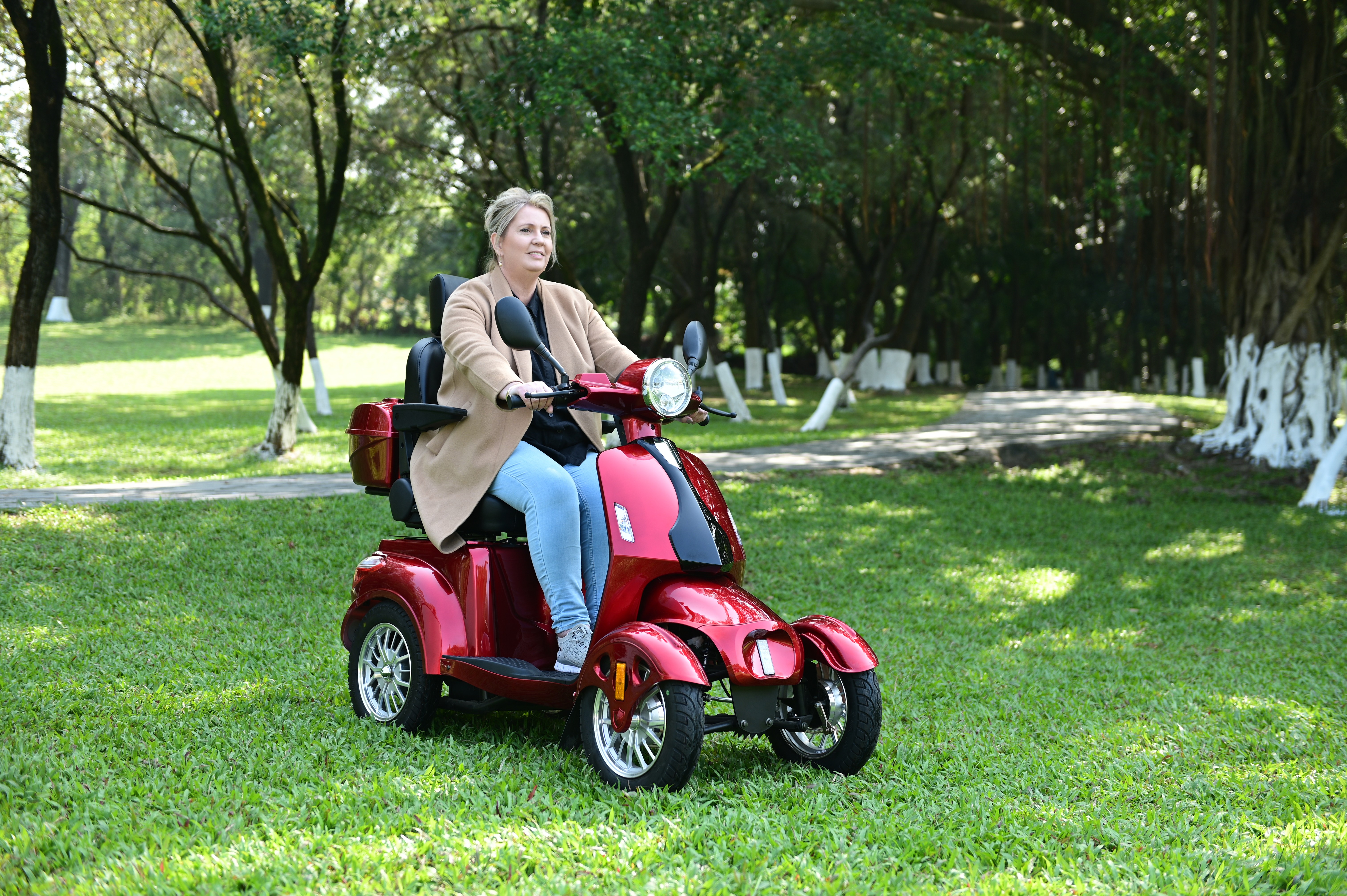 POWERFUL MOBILITY SCOOTER-Powered by a powerful yet quiet 600 Watt transaxle brushless electric motor & a 60V 20Ah long range extended battery, this 4 wheel mobility scooter can travel farther & faster than other scooters on the market. The front & rear electronic braking system ensure driving stability and steerability even when you need to stop suddenly. This high-performance scooter can hold up to 500 lbs.