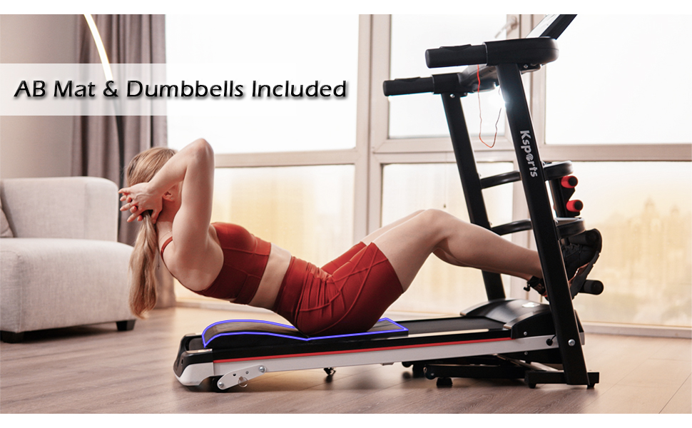 • Exercise your core muscles with the included abdominal mat & sit-ups rack and dumbbells.
