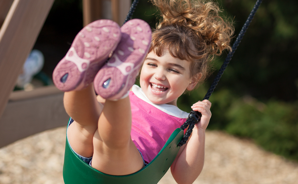 Climbing and swinging both activate upper and lower body strength, and help build fine motor skills with the gripping motion. Plus, the excitement of being outside and running around a playset does a kid’s body good!.